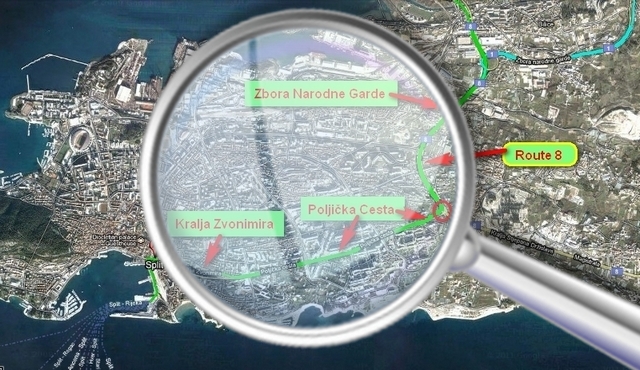 Then, to get into the city, follow the Route 8 until you get to Poljicka Cesta.