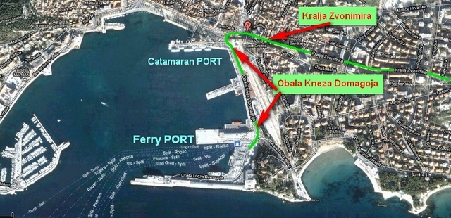Stay on Kralja Zvonimira until it turns into Obala Kneza Domagoja, which leads you all the way to Split Ferry PORT :